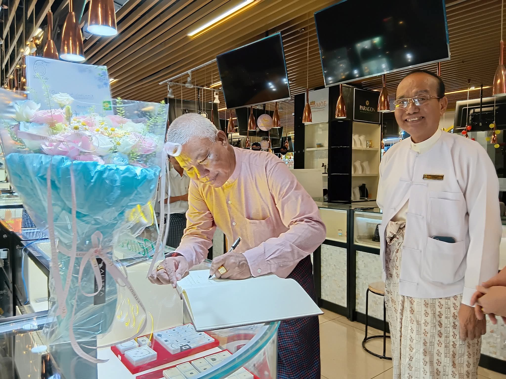 Oscar Thu " Gems & Jewellery ဆိုင်သစ်ဖွင့်ပွဲသို့ YGEA ဥက္ကဋ္ဌ ဦးမျိုးမြင့်နှင့် တွဲ-အတွင်းရေးမှူး ဦးအေးချိုတို့ တက်ရောက်